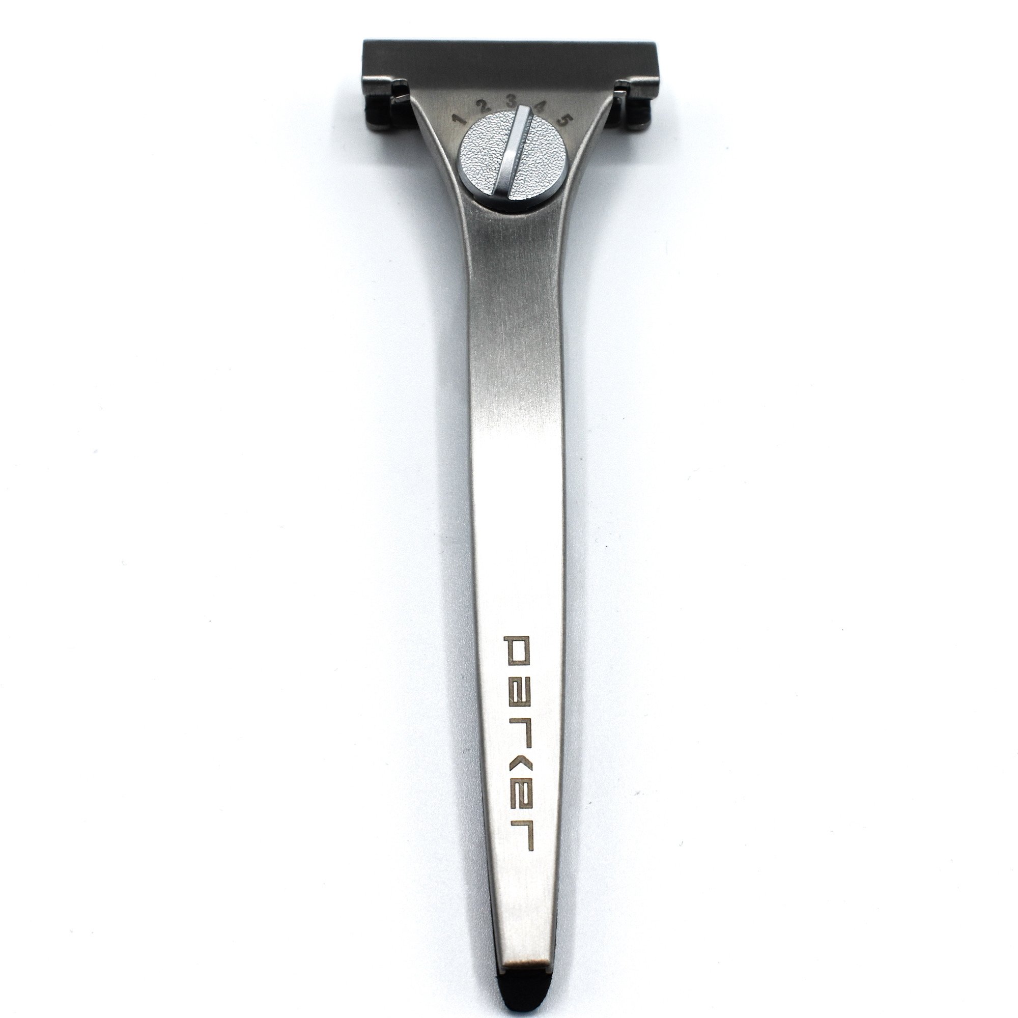 Parker’s Adjustable Injector Razor is precision engineered design to provide you with a smooth and irritation free shave. Our single blade razor provides a close and comfortable shave with fewer ingrown hairs and razor bumps when compared to multi blade cartridge razors since they cut the hair directly at the surface. With Parker’s adjustable design, it’s easy to customize your shave by simply turning the knob on the top of the razor. For the mildest shave, adjust the safety bar to a setting 1 which has a minimal blade gap. For a moderately aggressive shave, adjust to a setting 5 for the maximum blade gap (or try somewhere in between).