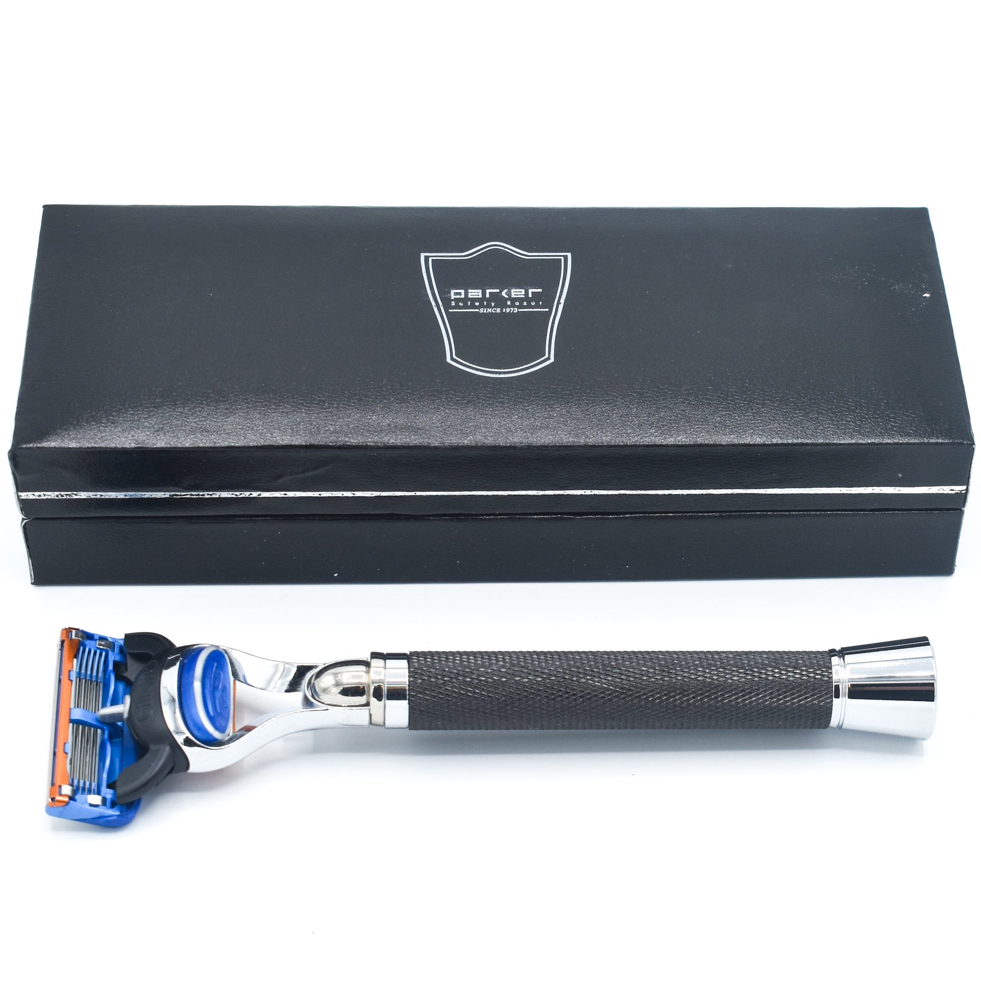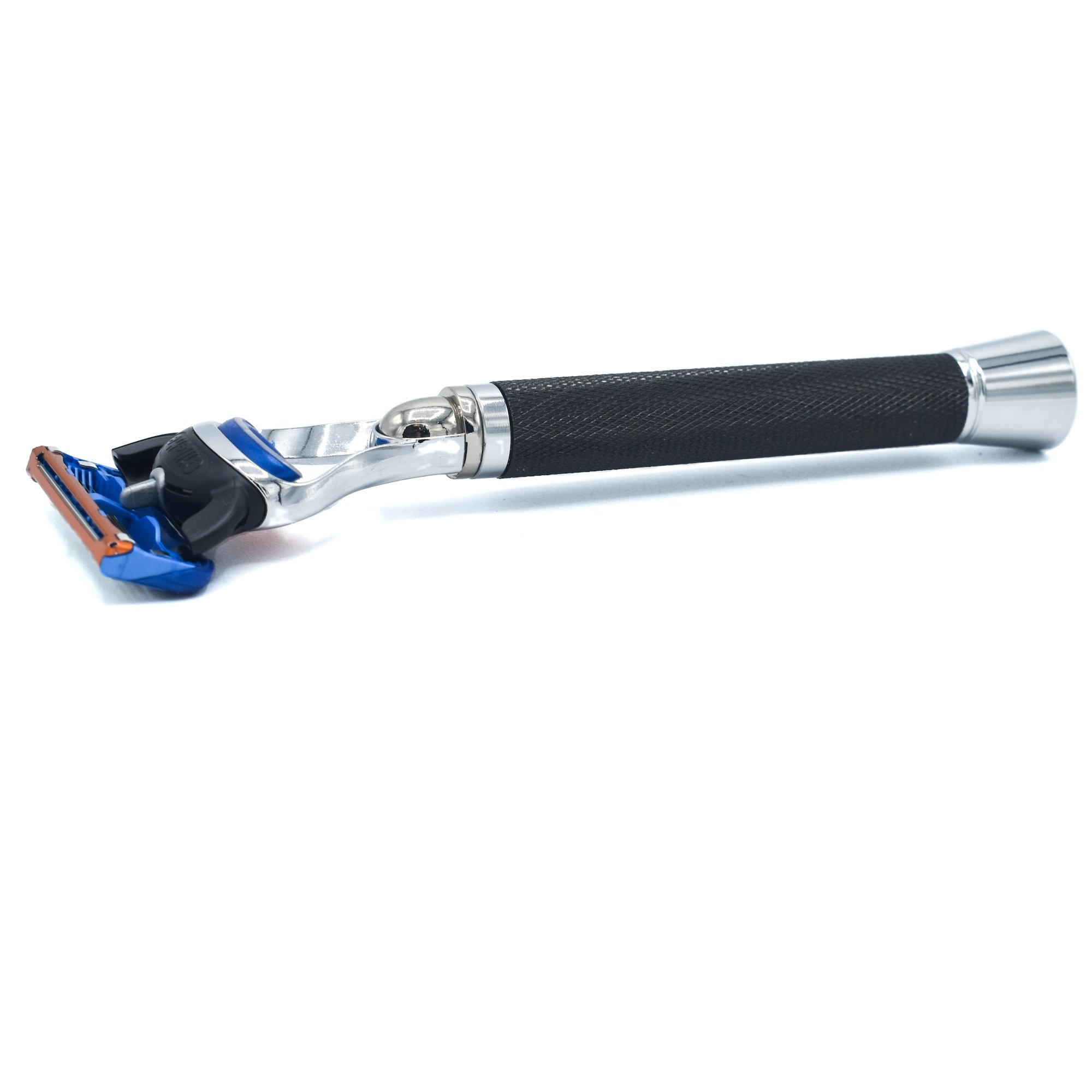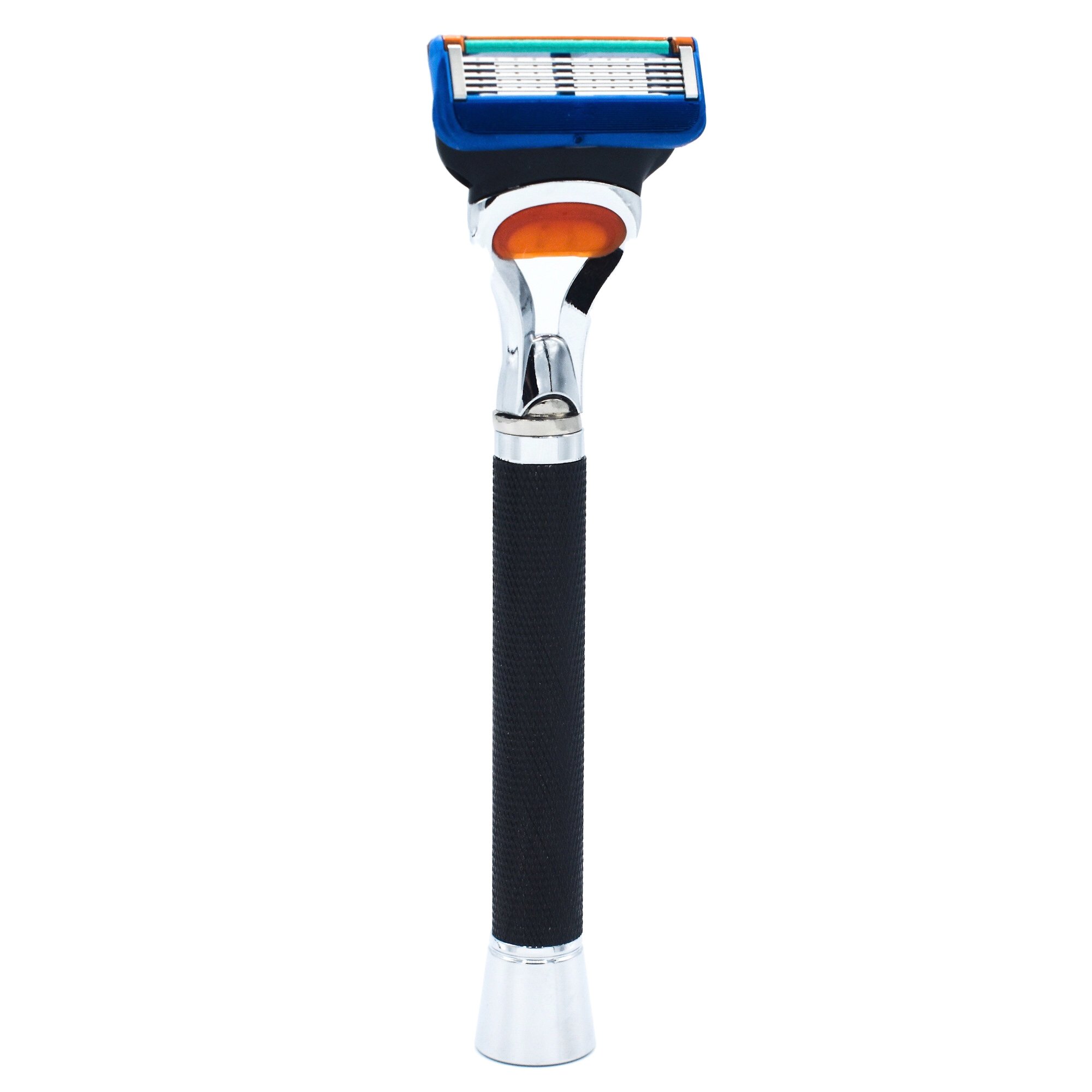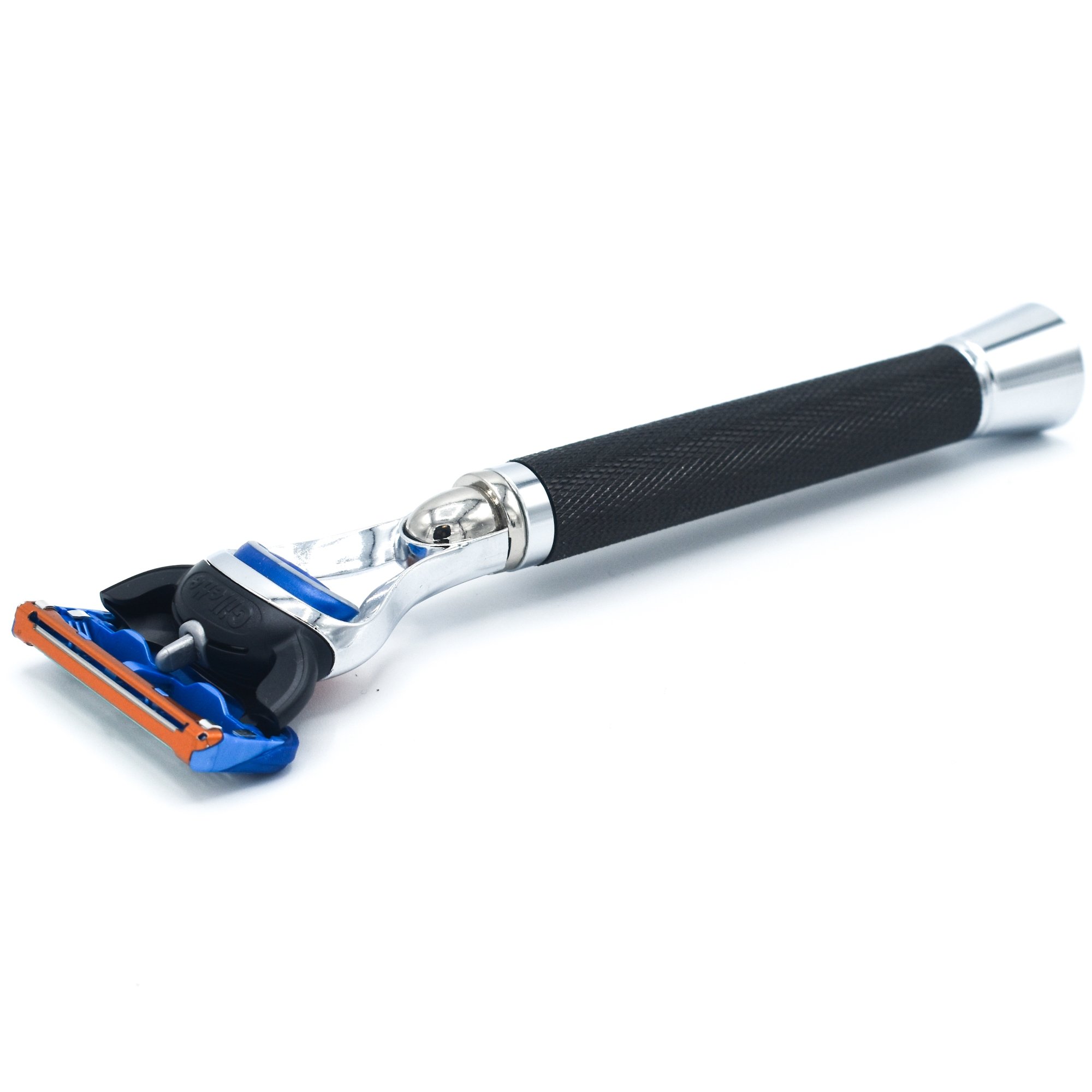 This beautifully crafted 5 blade razor is compatible with Gillette’s Fusion razor blades. The extra weight of this razor handle removes stubble with much less tugging than lightweight razors. The textured handle assures a sure grip even with wet and soapy hands. This is a wonderful razor for yourself or as a gift. One Gillette Fusion blade is included.