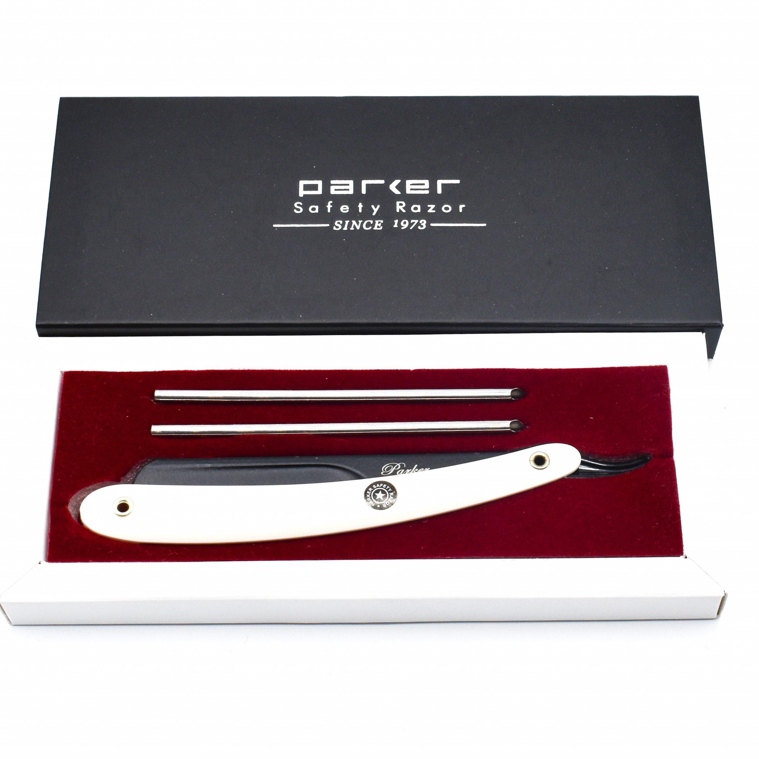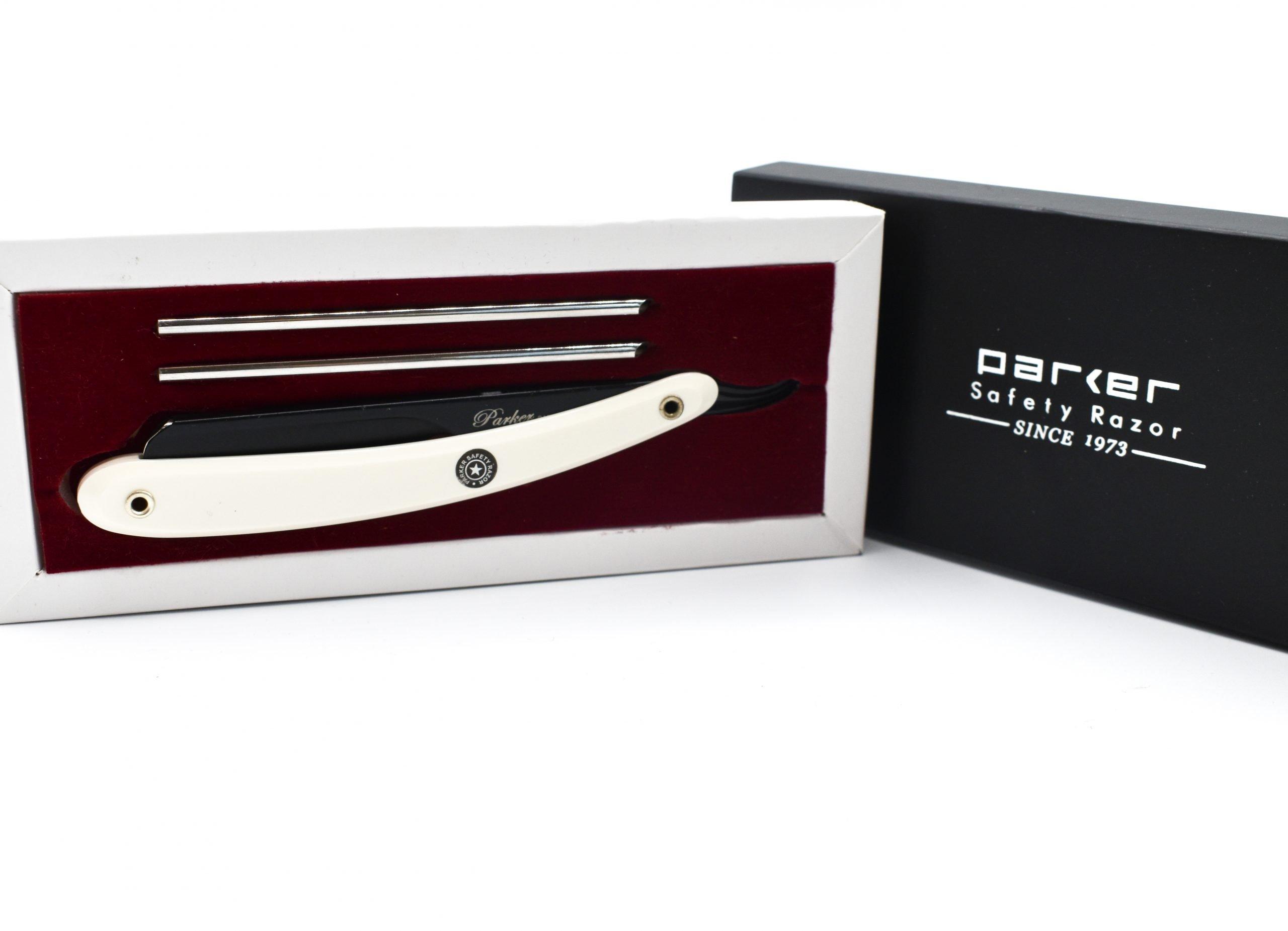 Parker’s Shavette Razors are used in barbershops and shave parlors worldwide. This razor has an “insert” which you load the blade into. You then slide the insert back into the blade arm with the blade. Unlike most shavettes, our razor has a stainless steel blade arm with an elegant black finish and a white plastic handle. Just pick your favorite double edge blade, snap it in half, put it in the razor and you’re off — No sharpening or honing required! We recommend our Parker Premium Platinum Half Blades or choose from a variety of professional quality pre-cut barber blades.