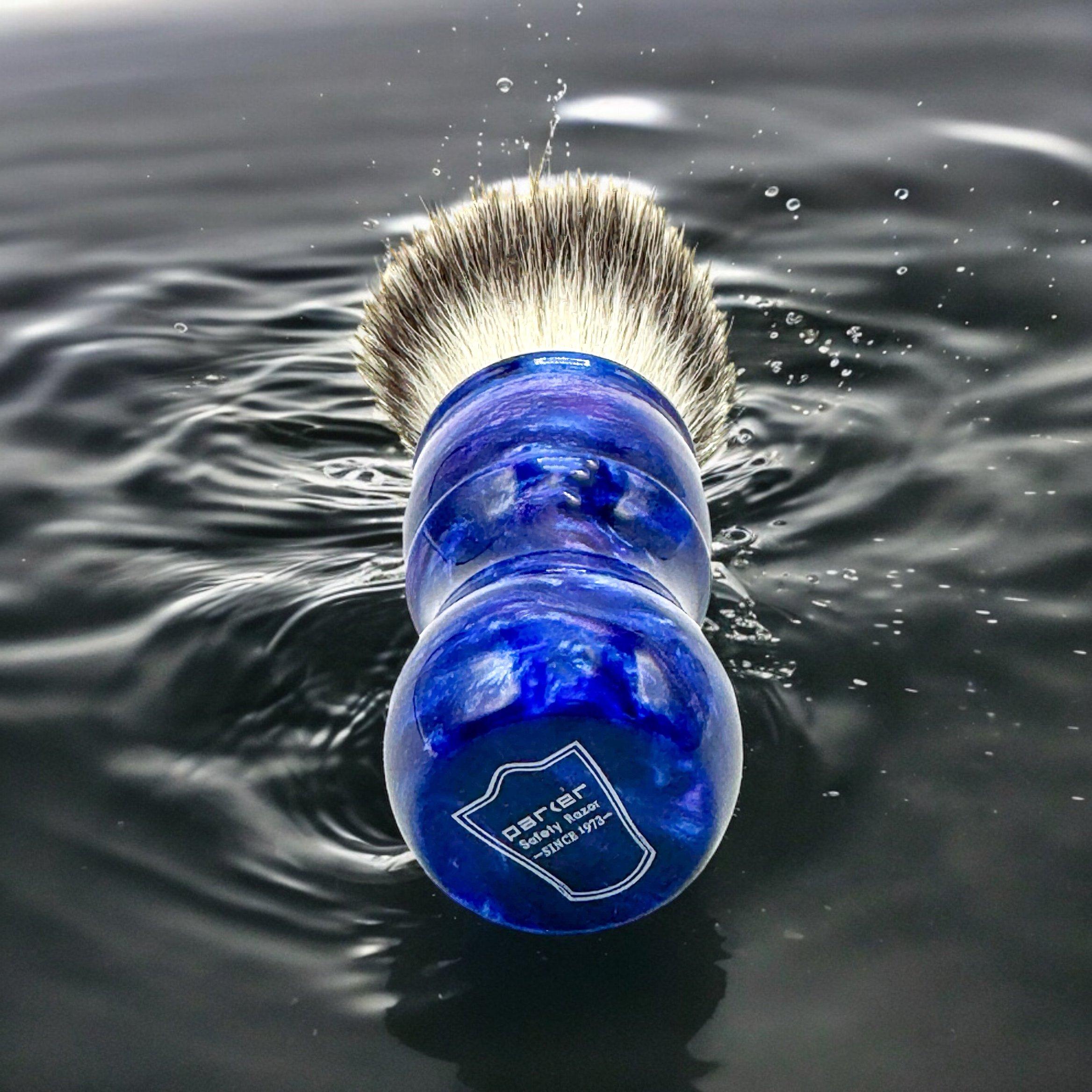 The Parker BLSY2 with handsome iridescent blue handle is NEW for summer 2024. Parker’s premium synthetic bristle brush is the best alternative to badger and boar brushes for vegans, for travel or for those with sensitive skin. These ultra soft bristles create an astounding lather and dry quickly, making it ideal for travel or home use. A great brush can be the key ingredient for a great shave.