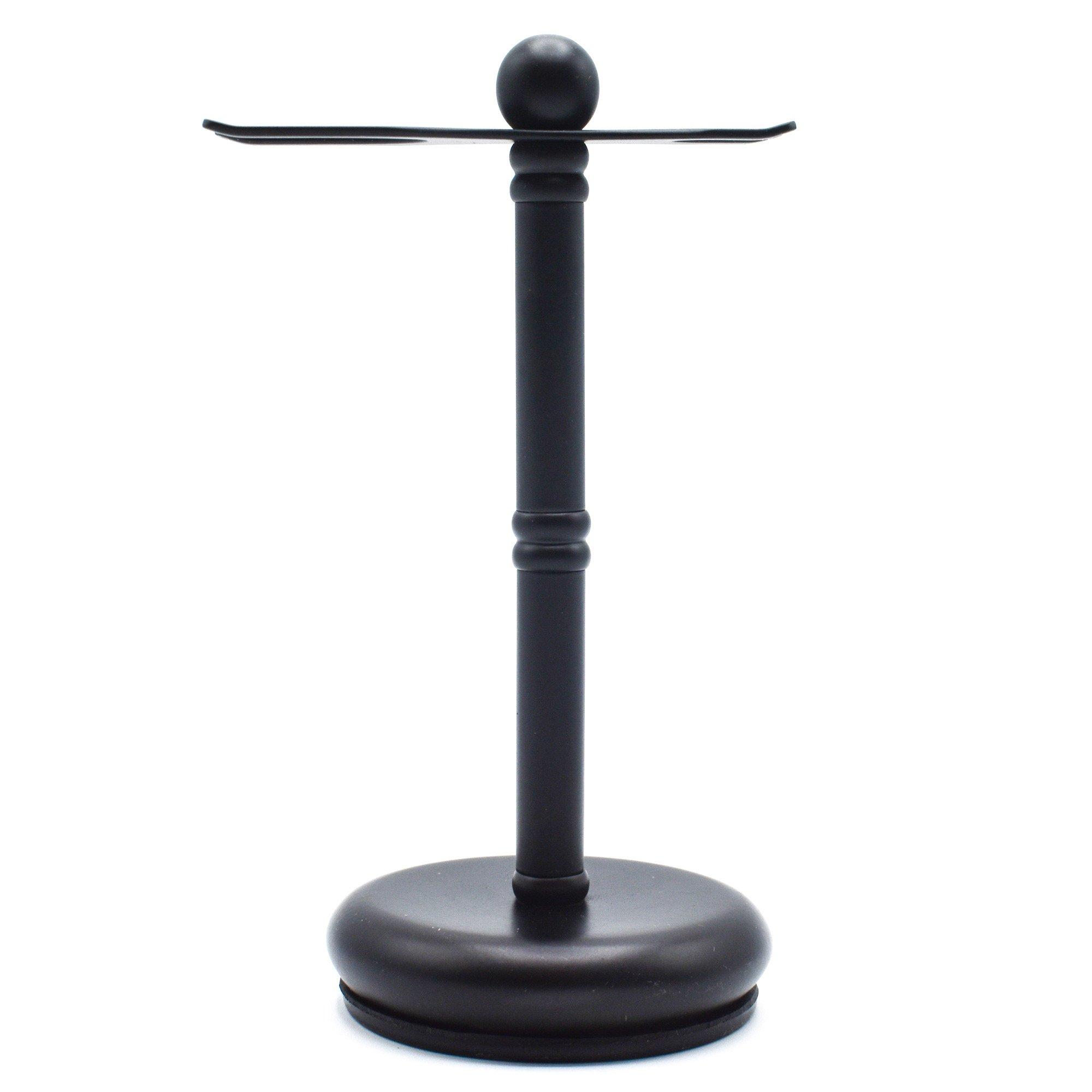 Parker Safety Razor’s heavyweight solid brass with matte black finish razor and brush stand is a must for storing all standard razors and brushes. This stand is more than just a display piece. The most important thing you can do to ensure brush longevity is to dry the brush with the bristles facing down in a stand. This stand will ensure proper razor and brush storage. This stand will accommodate most razors with a round handle and brushes with 20-25 mm brush knots. Notable features include: