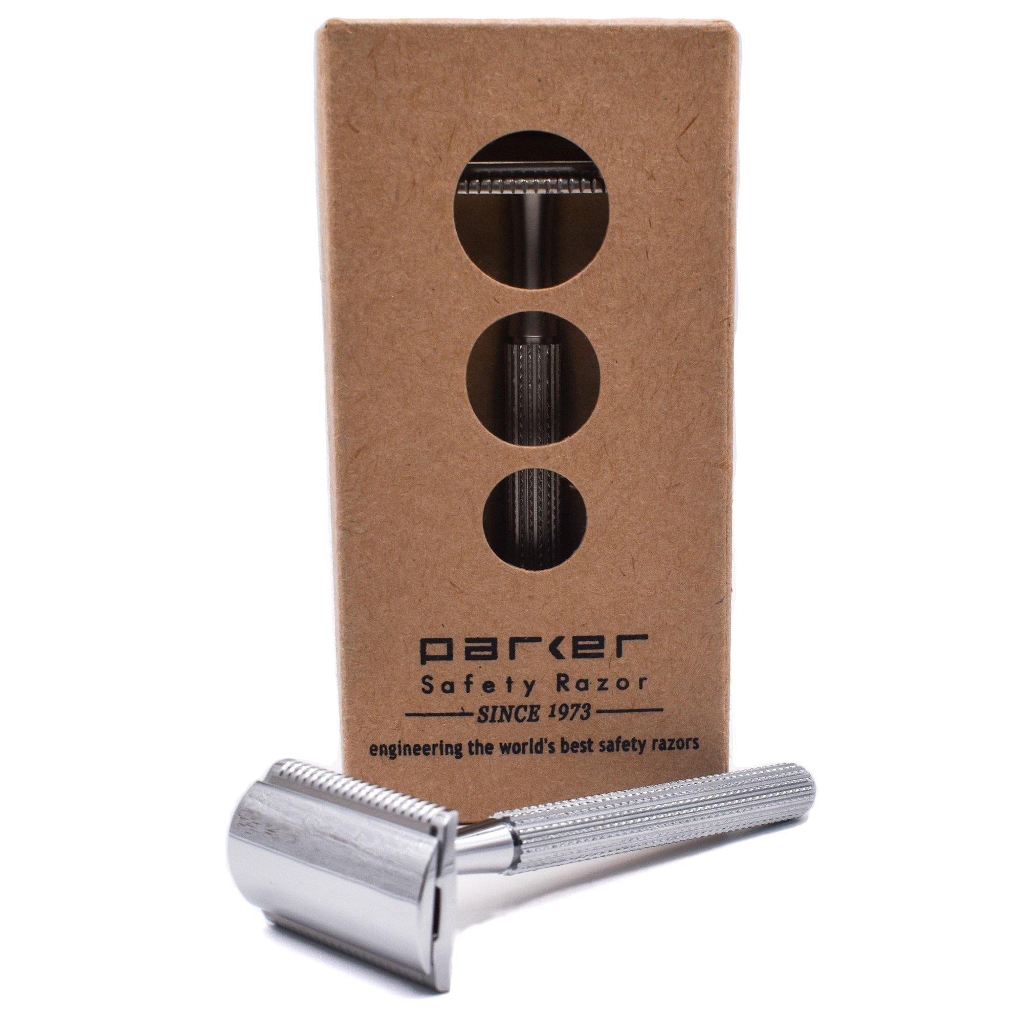 *Just introduced in late 2022* The Parker 78R 3-piece double edge safety razor has a highly textured electroplated handle that makes it terrific for use with wet and soapy hands. Parker’s newly designed razor head delivers an excellent shave – both close and comfortable – it is mild yet efficient, excellent for both men and women.