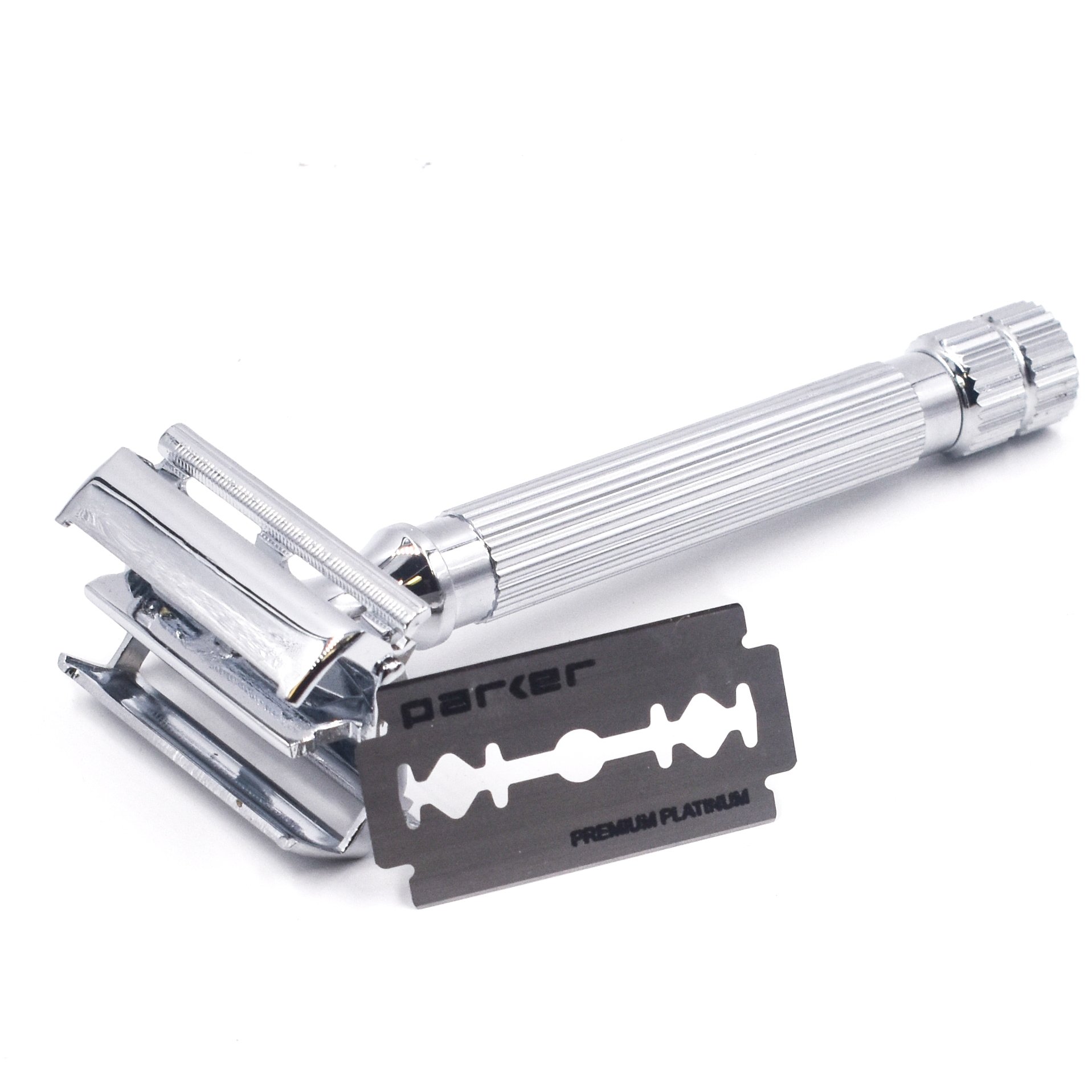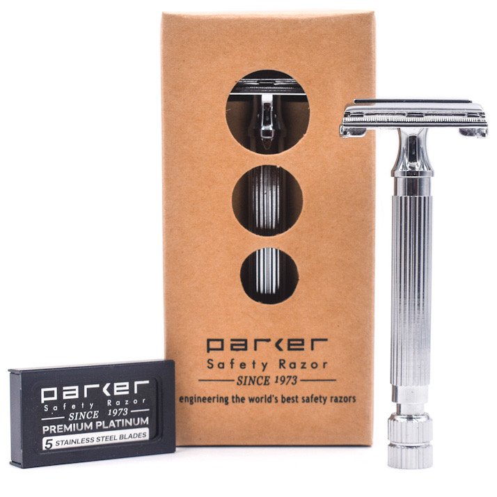The Parker 82R is a classic twist-to-open butterfly safety razor. It has a wonderful heft and its textured handles make it wonderful for use with wet and soapy hands. Parker’s famous butterfly head delivers an excellent shave – both close and comfortable. This is an excellent razor for those new to safety razors or for experienced shavers. It’s classic styling makes this razor a great gift too!