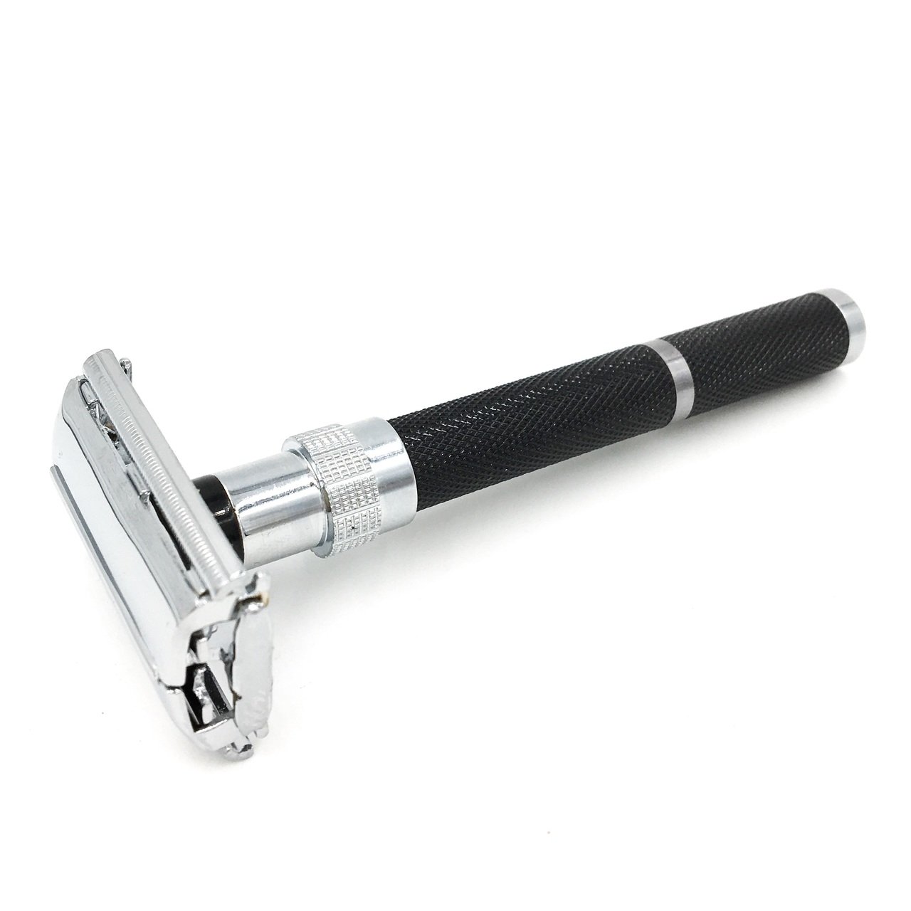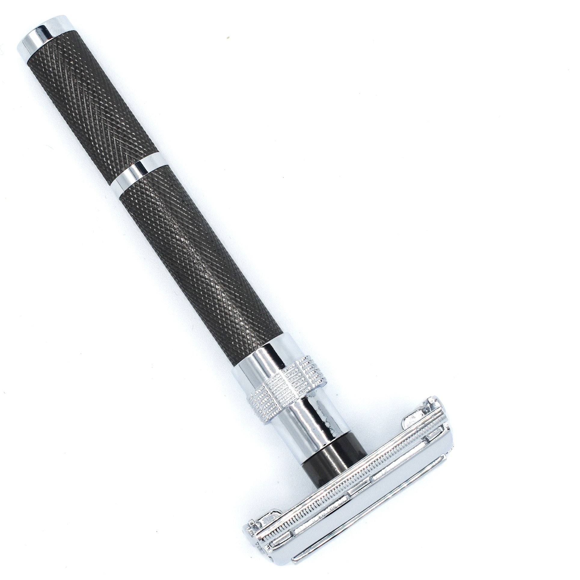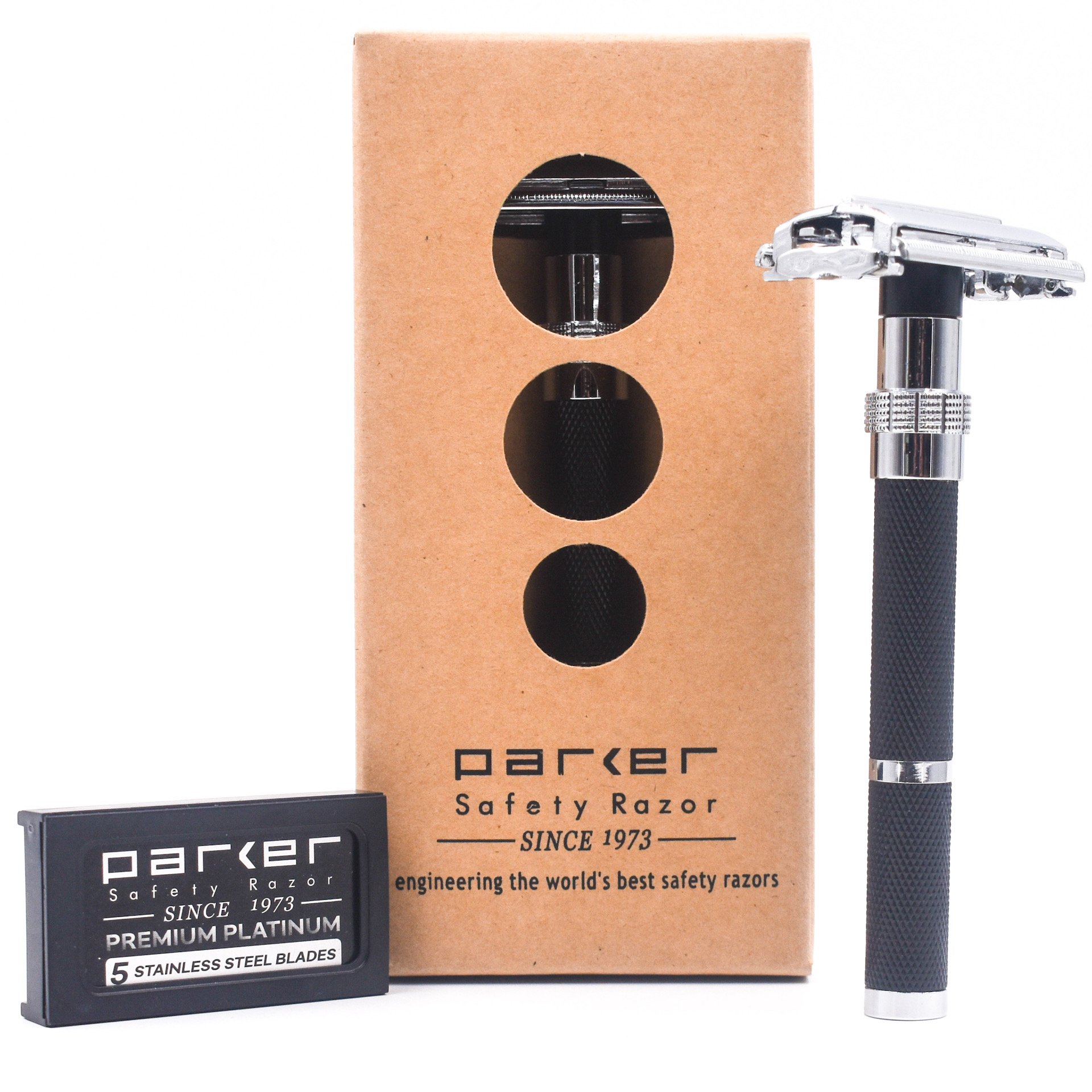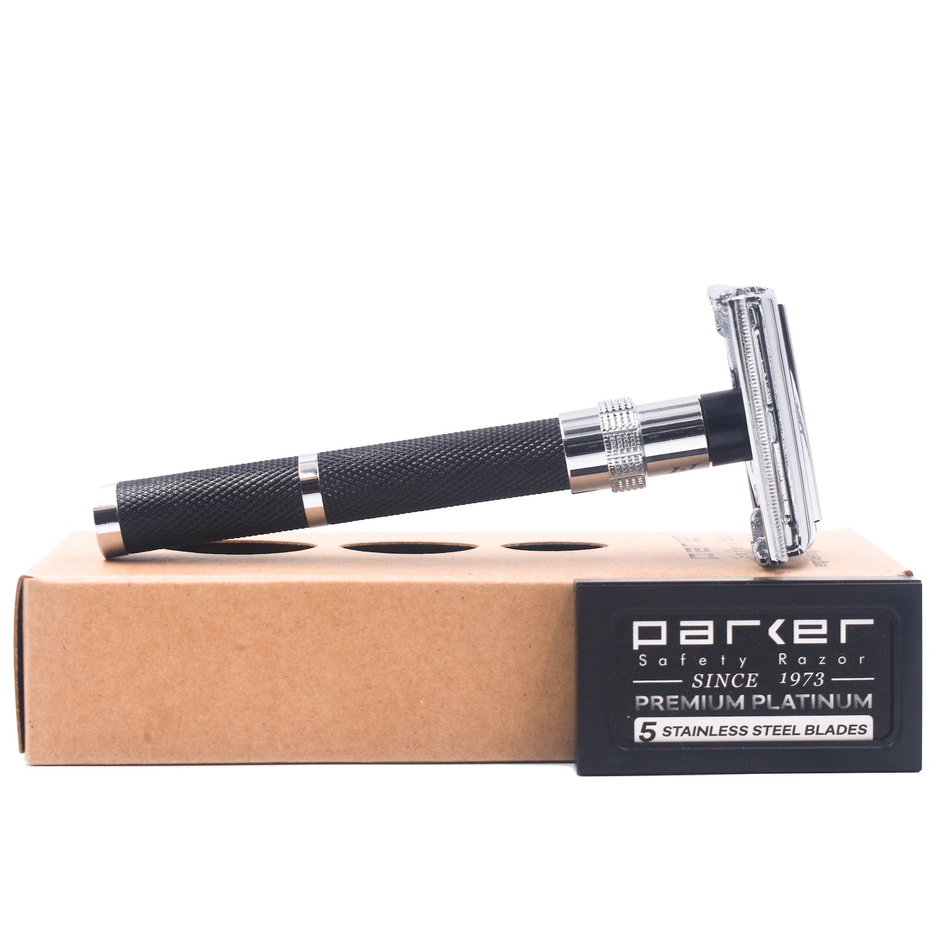 The Parker 96R butterfly open is one of the most popular models based on its classic good looks, intermediate weight and textured graphite and chrome handle. It has a thinner diameter handle, so it is great for those with smaller hands. It has Parker’s precision engineered twist-to-open head, a nice heft and a wonderful balance. This is an excellent razor for new and experienced wet shavers.