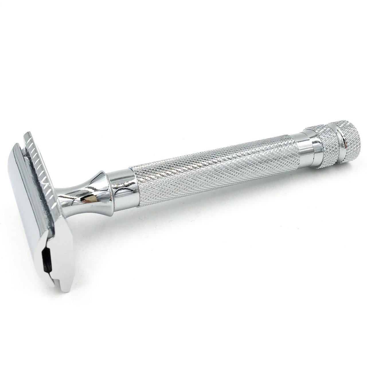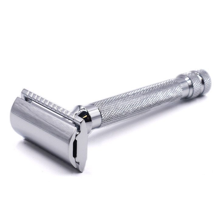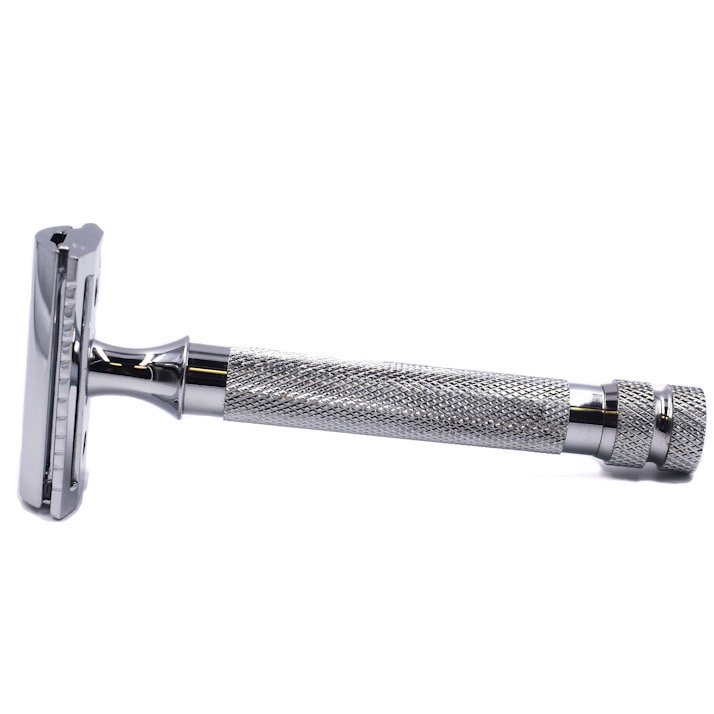 This Parker 91R safety razor is the best selling 3-piece razor model. It is one of the original Parker models — its design is a classic and it remains an excellent choice. It has an aggressive textured handle, a nice heft and a wonderful balance. This is an excellent razor for new and experienced wet shavers.