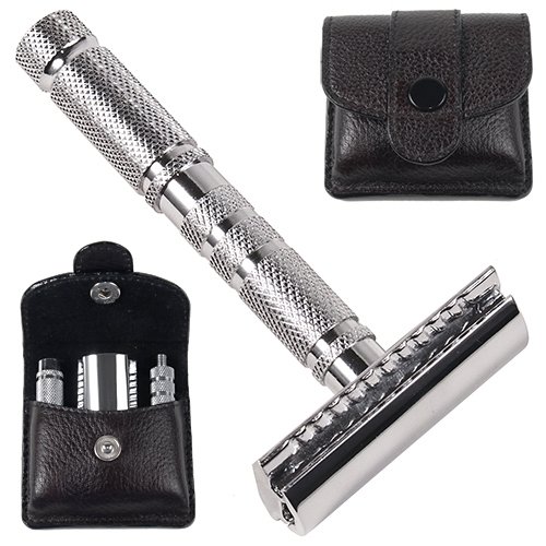 - Genuine Parker A1R 4 piece travel safety razor – a wonderful double edge safety razor with a chrome plating over a brass frame. The razor disassembles into three pieces for easy storage in the travel case. It is portable for travel, but durable enough for everyday use.