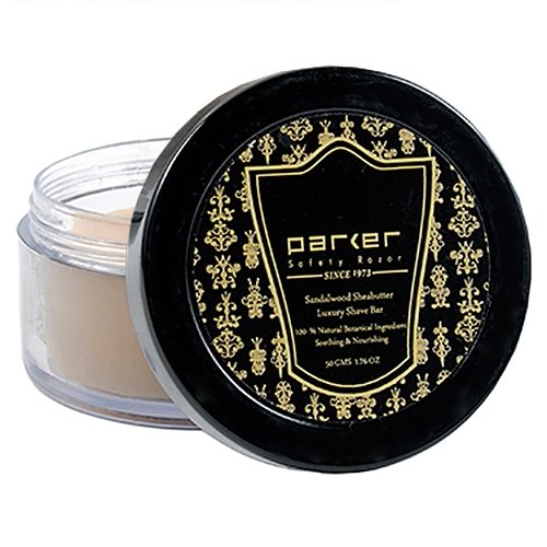 - Parker’s premium sandalwood & shea butter shaving soap – comes in a watertight 50g container. It is great for home use or travel. Contains: olive oil, aloe vera, cocoa butter, coconut oil, and almond oil to lubricate and condition your skin, generating a rich and creamy lather.