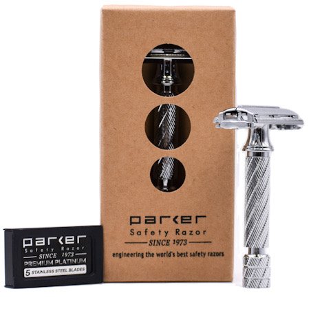 The Parker 87R is a hefty little safety razor with the world famous Parker Twist to Open head for a close, comfortable shave. This is a short handle razor with a classic 3 inch razor. Twisting the knob on the bottom of the razor will open the butterfly doors for easy blade insertion. Its beautifully patterned handle is textured to provide a sure grip, even with wet soapy hands.