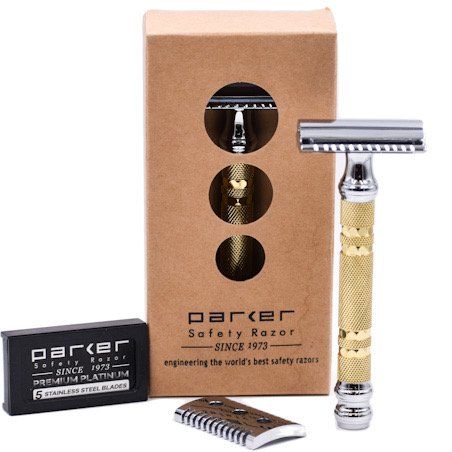 Parker’s Convertible Safety Razor comes with both our open comb and closed comb base plates. The open comb gives a milder shave and the closed comb has greater blade exposure for a more aggressive shave. It’s like getting two different razors for the price of one!