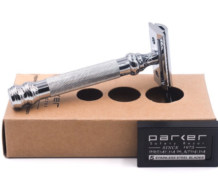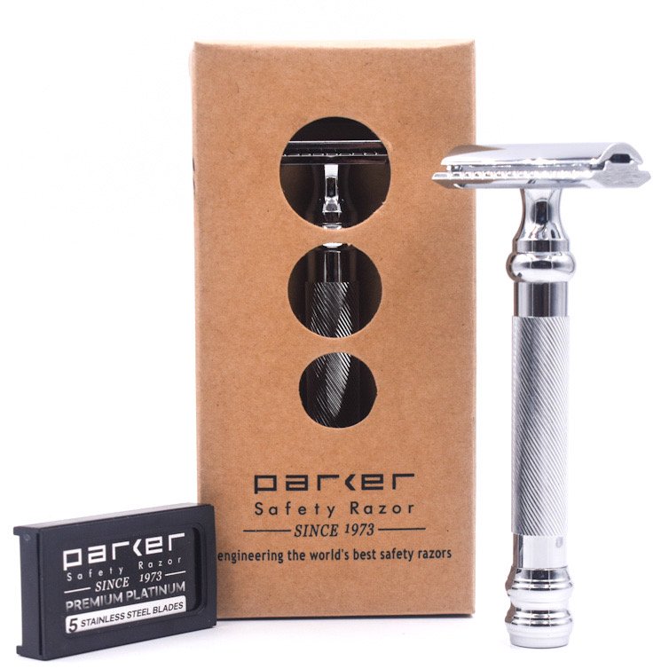 The Parker 98R is a Super Heavyweight 3-piece double edge safety razor. It has a wonderful heft and its knurled handle make it terrific for use with wet and soapy hands. Parker’s famous 3-piece razor head delivers an excellent shave – both close and comfortable — it ensures precise blade allignment.