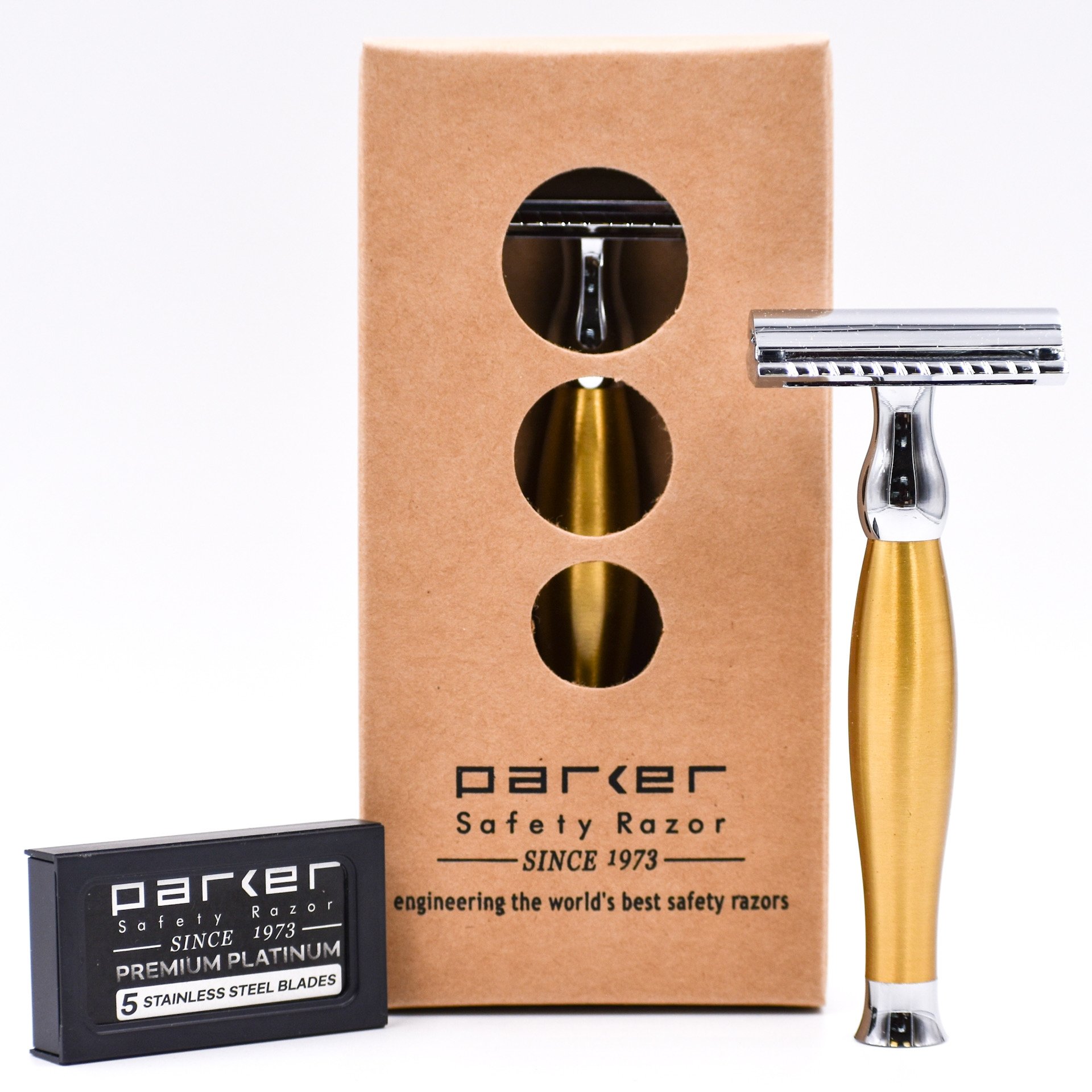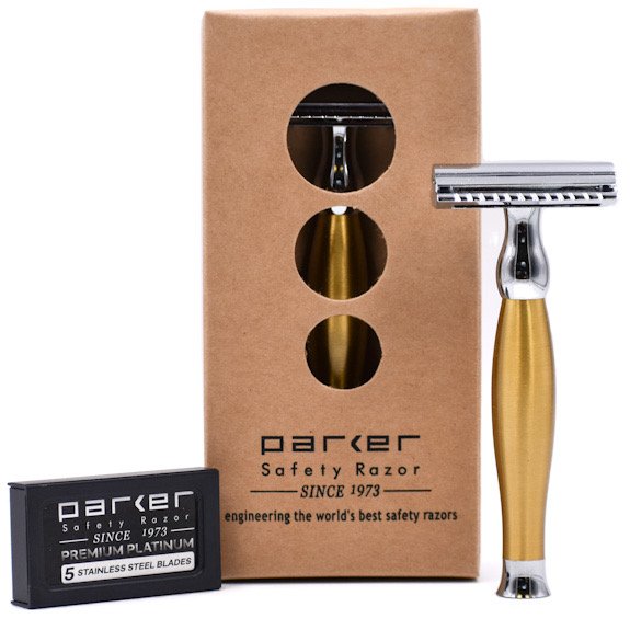 The Parker 48R Gold Tone razor has a nice heft weighing in at 3.4 ounces. The handle on this razor is mid-length, yet it weighs more than most long handle razors. As a result, this razor has a heavy in the hand feel. It has excellent balance and the extra heft is useful for conquering a tough beard — It is it a fantastic shaver.