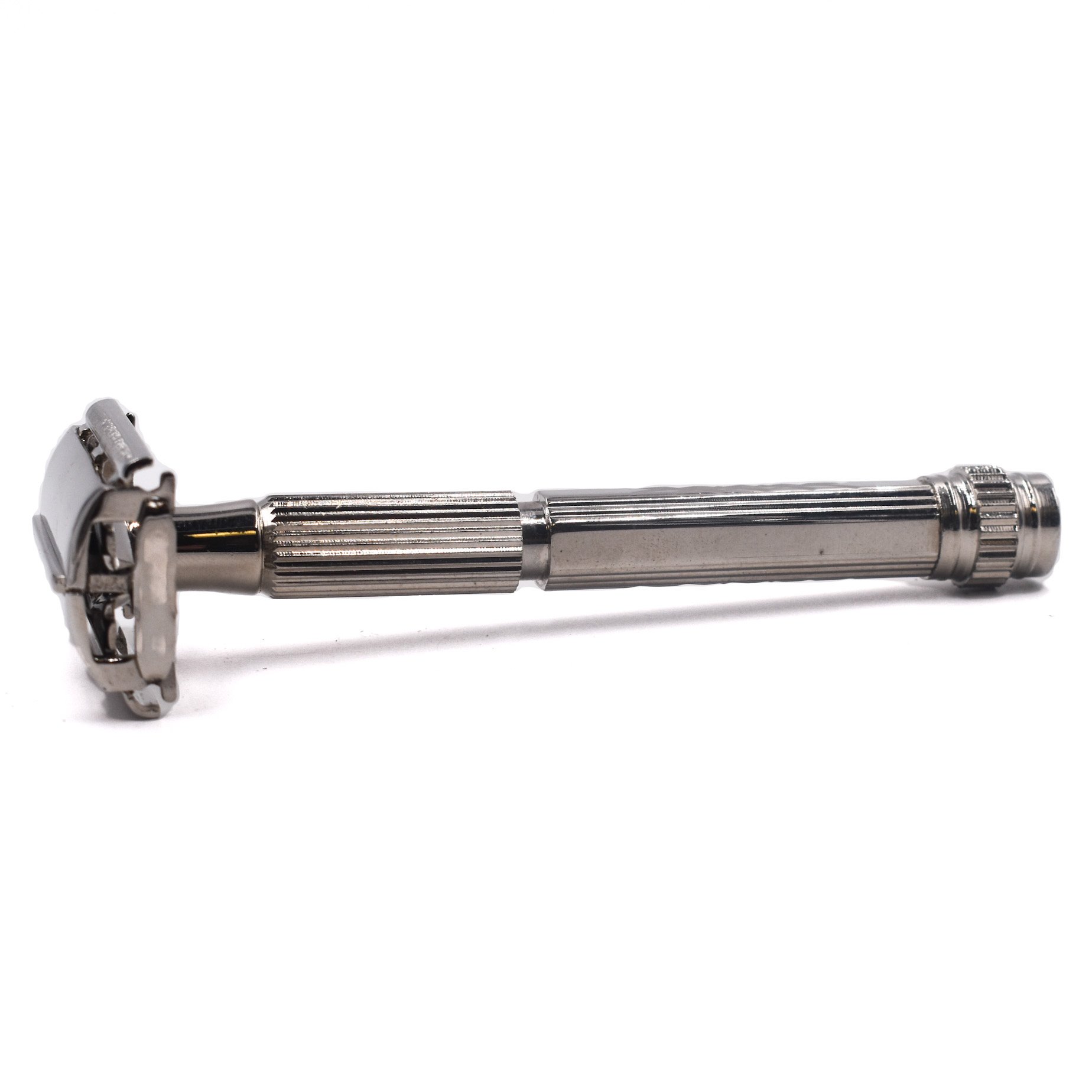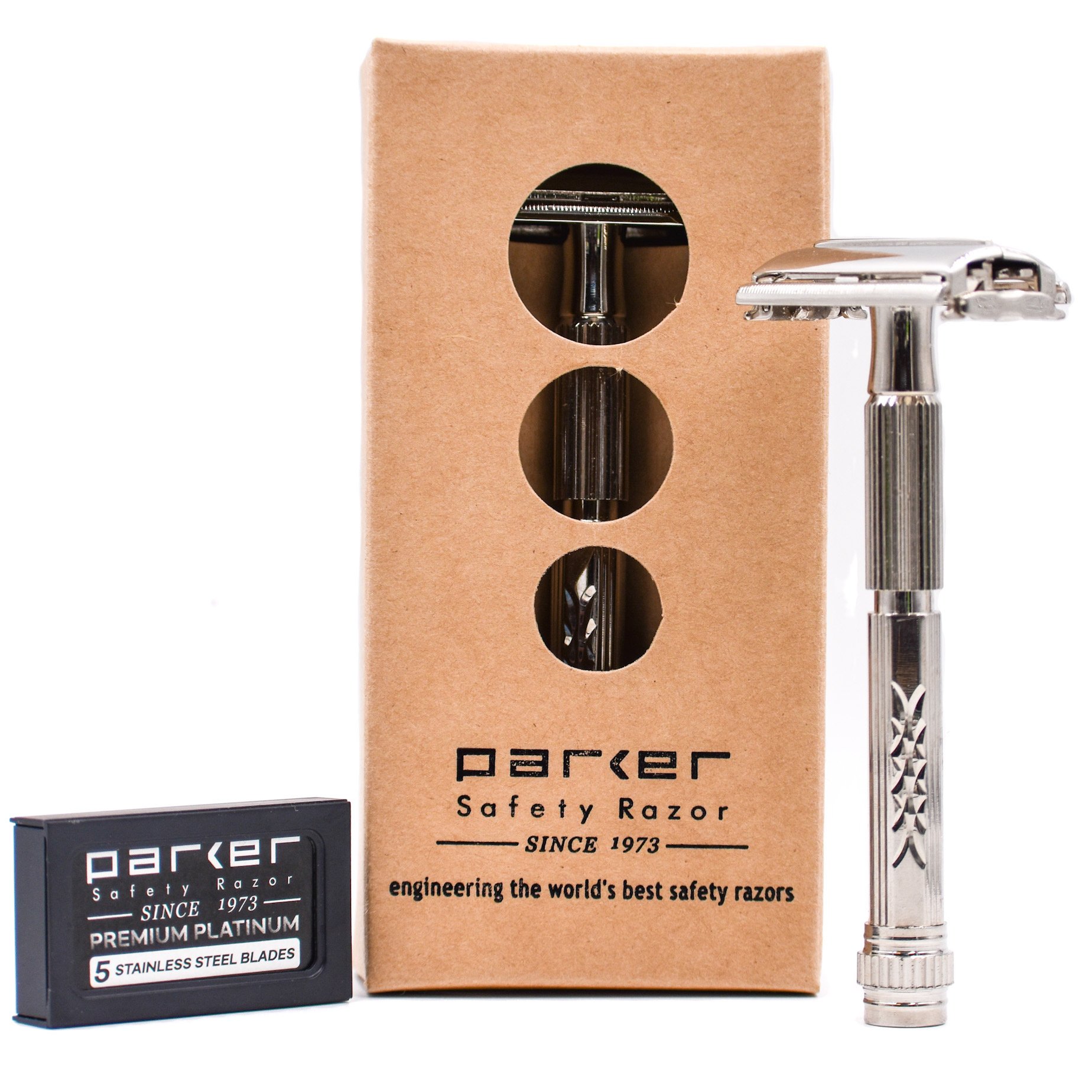 The Parker 60R razor has a unique etched design which many refer to as Crystal Cut. It maintaines a sure grip, even with wet hands. The razor is an excellent choice for new wet shavers or those who are prone to cuts because of its lighter weight in comparison to many of the heavier razors. As a result it is more forgiving.