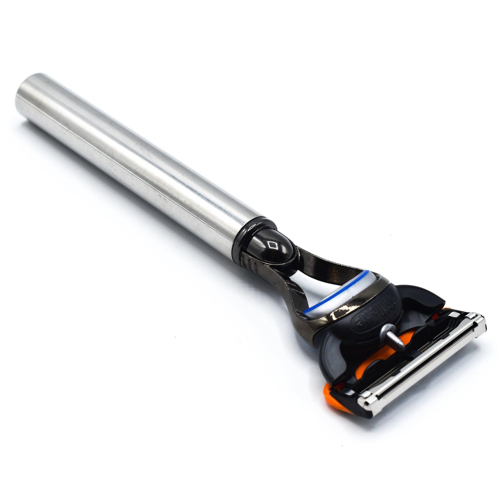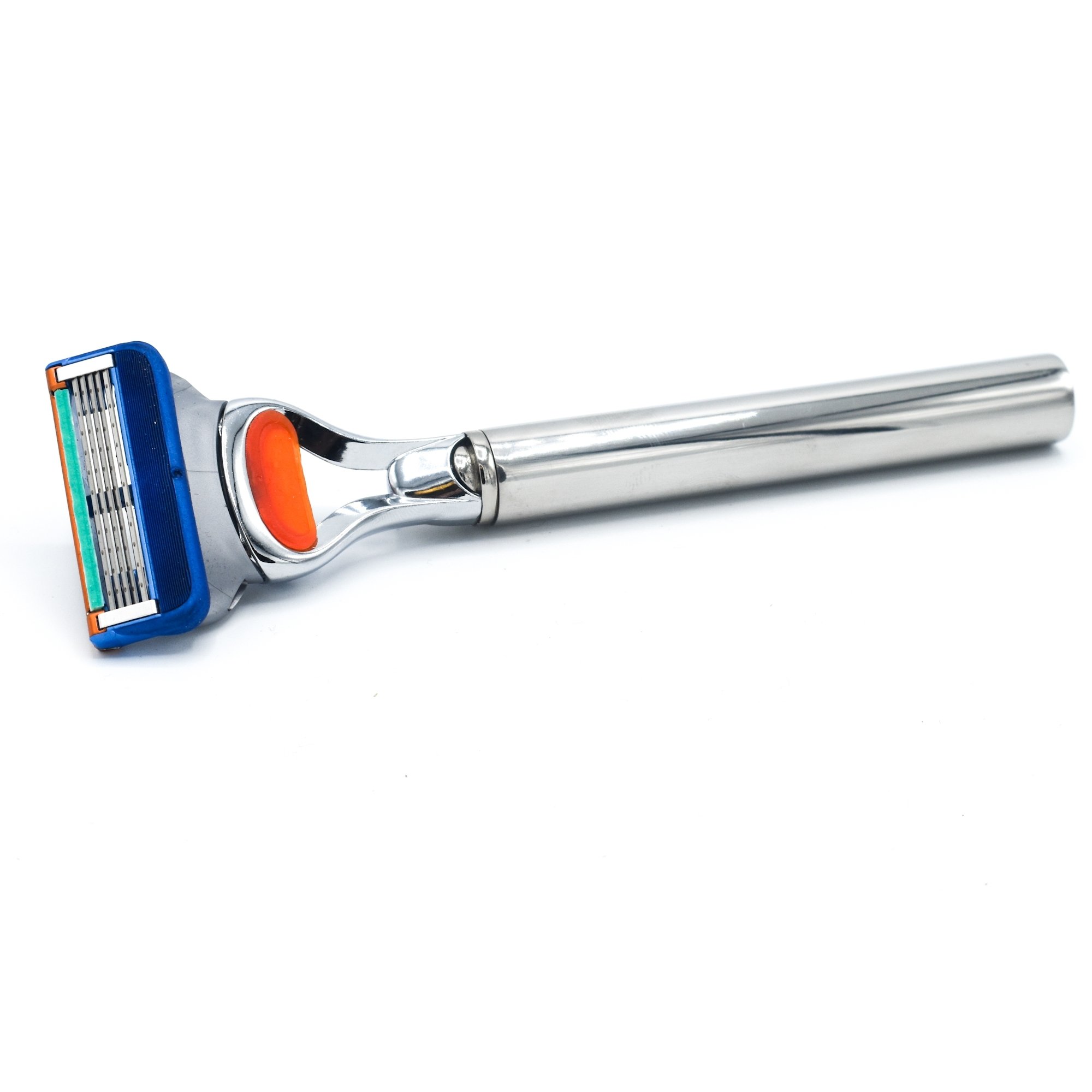 This beautifully crafted 5 blade stainless steel handled razor is compatible with Gillette’s Fusion razor blades. The extra weight of this razor provides for a smooth shave with less drag than lighter handled razors. This is a wonderful razor for yourself or as a gift. One Gillette Fusion blade is included.