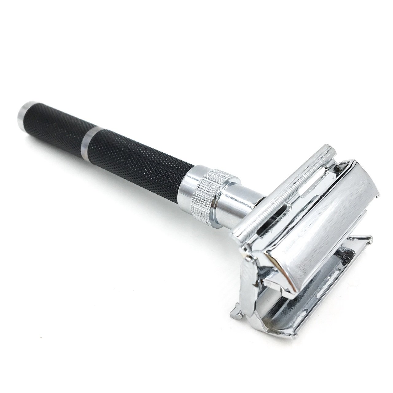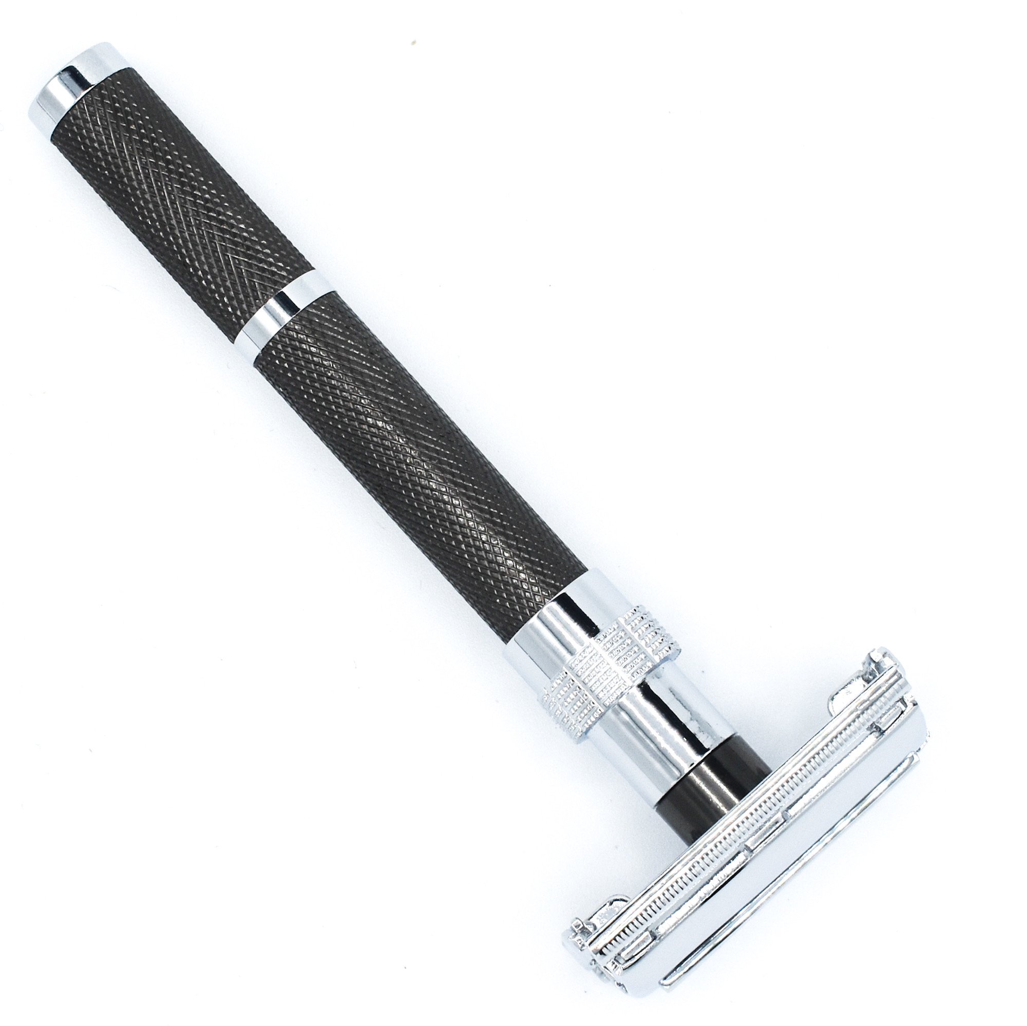 The Parker 96R butterfly open is one of the most popular models based on its classic good looks, intermediate weight and textured graphite and chrome handle. It has a thinner diameter handle, so it is great for those with smaller hands. It has Parker’s precision engineered twist-to-open head, a nice heft and a wonderful balance. This is an excellent razor for new and experienced wet shavers.